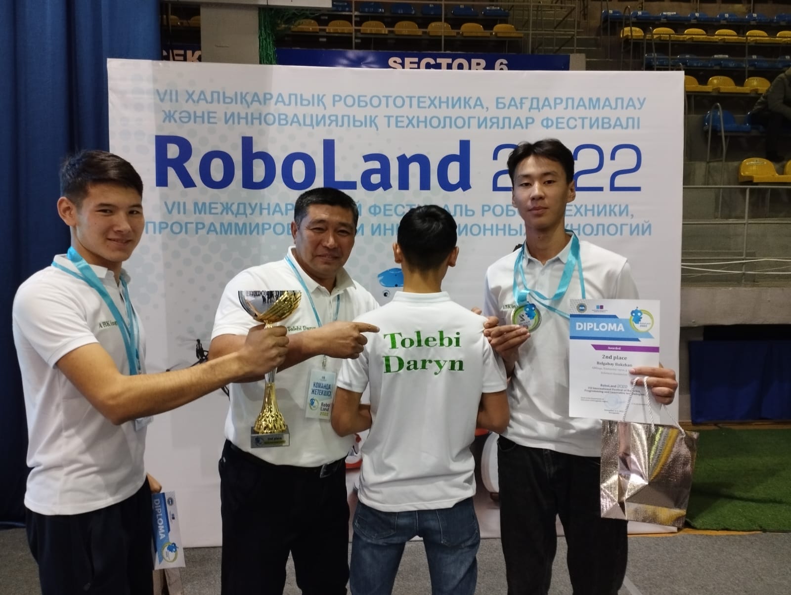 Қазақстан Республикасы Оқу ағарту министрлігі мен Қарағанды облысының білім басқармасының ұйымдастыруымен «Roboland 2022» VIІ халықаралық робототехника, бағдарламалау және инновациялық технологиялар фестивалі 2022 жылғы қараша айының 4-5 күні Қарағанды қаласы, «Жастар» спорт кешенінде, «Шахтер» стадионында өтті. Robоland - бұл жаңа кездесулер мен тәжірибелер, қызықты жарыстар және ынталы көрермендер. Іс- шараның мақсаты оқушылардың шығармашылық белсенділігін дамыту, техникалық пәндерді дәріптеу, білім беру робототехникасының мүмкіндіктерін көрсету. Халықаралық фестивалге Қазақстанның, Ресейдің, Грецияның, Өзбекстанның, Қырғызстанның түкпір-түкпірінен 800-ге жуық қатысушы қатысты. Түркістан облысы адами әлеуетті дамыту басқармасы "Облыстық қосымша білім беруді дамыту орталығы" КММ-нің директоры Ешенқұлов Бақытжан Қабайұлының жетекшілігімен «Төлеби ауданының мамандандырылған мектеп-интернатының 11-сынып оқушылары Рахматтула Ақжол, Балғабай Бағжан «Roboland Kazakhstan» категориясынан жүлделі ІІ орынды, Кенжебек Сұлтан, Аманхан Алихан «Ралли» категориясынан жүлделі ІІІ орынды иеленді. Жеңістеріңіз құтты болсын!